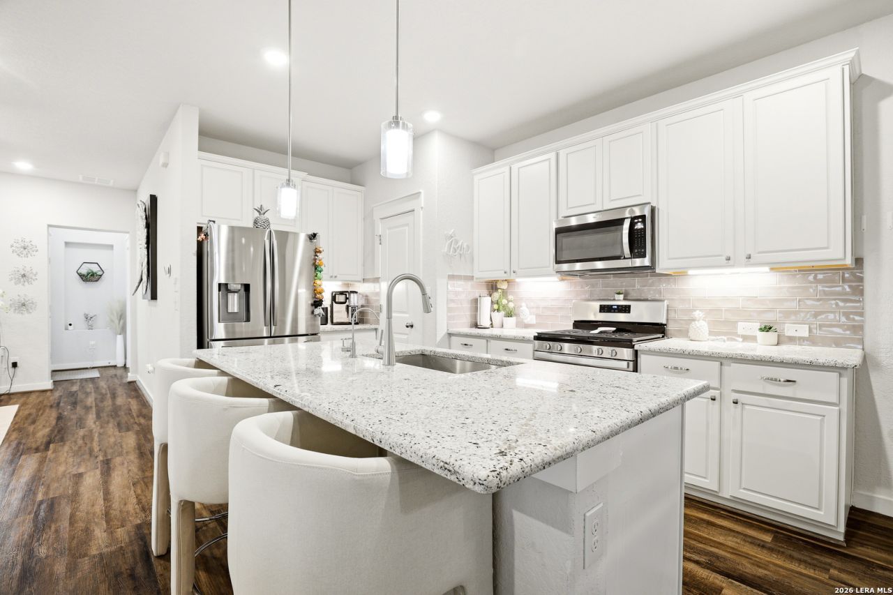 If youve been searching for a San Antonio home near Randolph Air Force Base that offers space, privacy, and an easy commute, this one checks all the boxes. Welcome home to this beautifully maintained single-story home offering space, flexibility, and everyday comfort in a prime location. From the moment you step inside, youre welcomed by a bright, open-concept design with high ceilings and recessed lighting that create an airy, inviting feel, making daily living and entertaining feel effortless. This four-bedroom home also features a versatile flex space that can be used as a home office, game room, or second living area, giving you the flexibility to fit your lifestyle. The kitchen sits at the heart of the home, complete with stainless steel appliances, granite countertops, a large island, and a breakfast bar that is perfect for casual meals or gathering with friends and family. It opens seamlessly to the living area and out to the backyard, creating a true indoor-outdoor connection. Step outside to a covered patio and fully fenced backyard designed for relaxing or entertaining. With no back neighbors and peaceful greenspace behind the home, youll enjoy added privacy and a more serene setting. Located with easy access to I-10 and just minutes from Randolph Air Force Base, Lackland Air Force Base, and Fort Sam Houston, this home is ideal for commuters and military relocation.